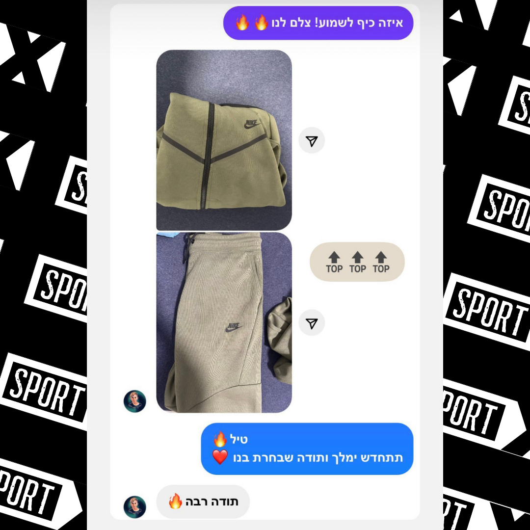 החלק התחתון: מכנסיים בגזרה ספורטיבית עם גומי נוח במותן, מתאימים לאימונים, ריצות ולשימוש יומיומי.